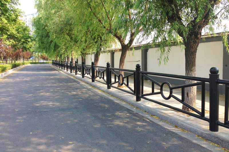 傳統型市政護欄通常采用簡單的直線設計,材料多為鋼材或鑄鐵。這種護欄的結構較為穩固,能夠有效地分隔機動車道和非機動車道,或者保護行人在人行道上的安全。其外形簡潔大方,常見的顏色為黑色、白色或灰色,與城市的整體環境相協調。