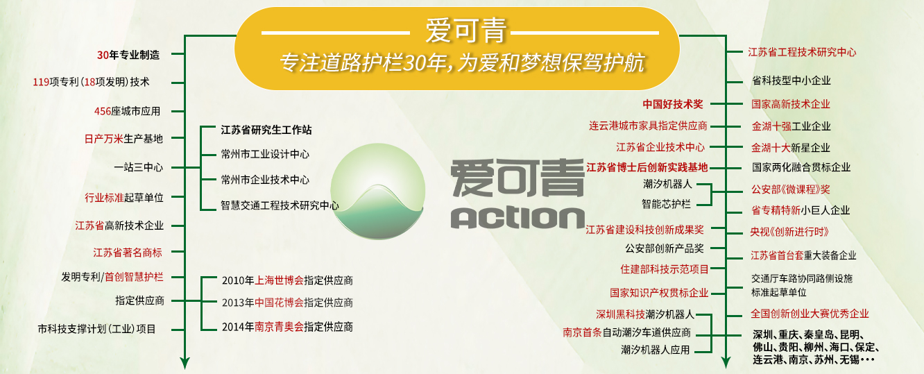 集團公司主要生產(chǎn)道路護欄、圍墻護欄、河道護欄、城市文化護欄、智慧護欄、園林設(shè)施、亮化護欄、智慧路燈等系列交通道路設(shè)施產(chǎn)品。愛可青公司擁有護欄專業(yè)全自動數(shù)控成套生產(chǎn)線、2條機器人切割、焊接流水線、4條全自動靜電噴涂流水線以及材料檢測、產(chǎn)品檢驗設(shè)備;擁有專門技術(shù)人員100多名,工程設(shè)計,工程預(yù)算全部使用智能計算機。
