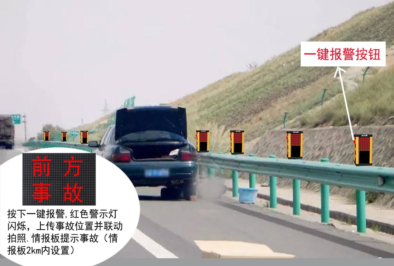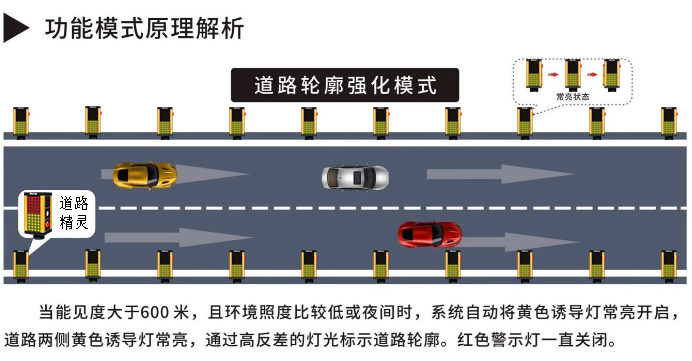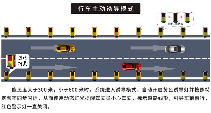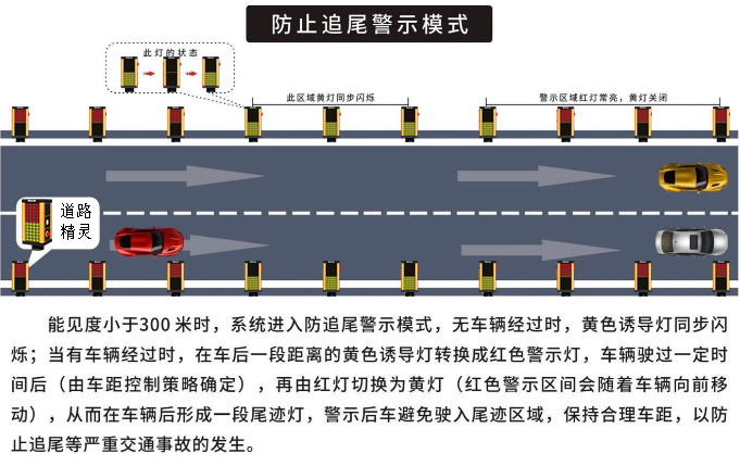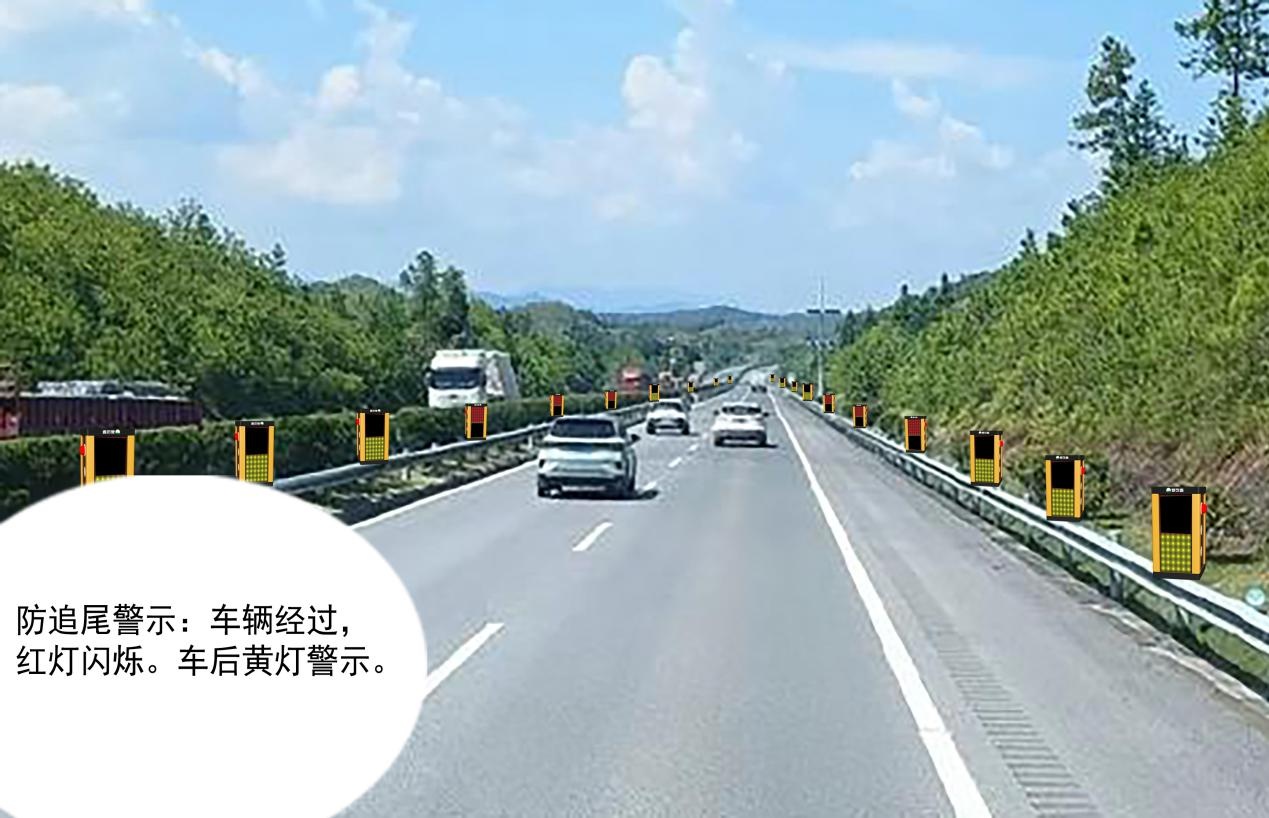 14.事故預警功能:車輛停滯在某道路精靈檢測區(qū)域時,可觸發(fā)上游特定組道路精靈的紅色警示燈點亮,形成紅色尾跡來提示后車前方有車輛存在;
