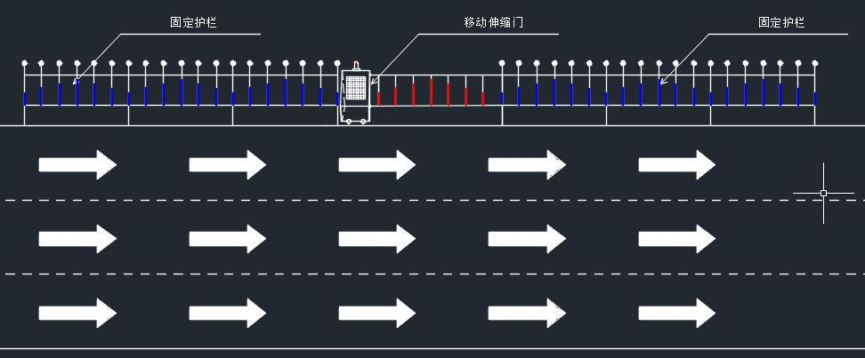 移動伸縮門護欄正常打開的平面圖展示