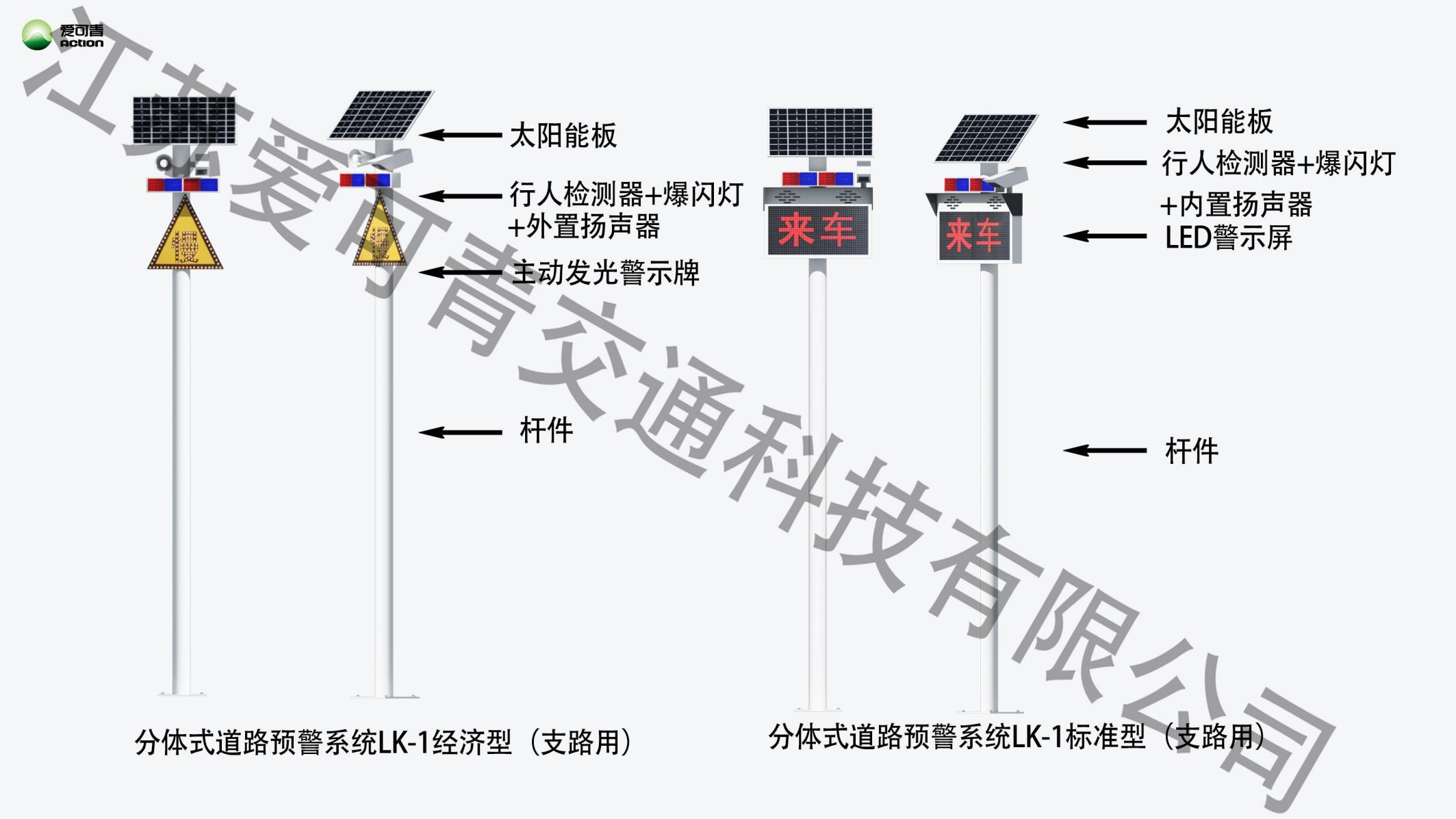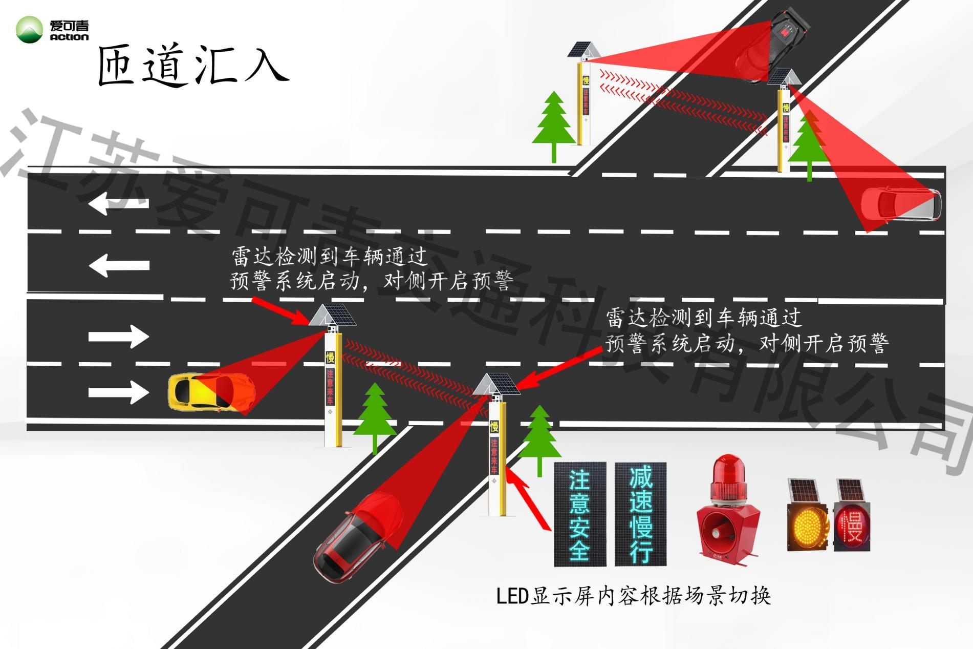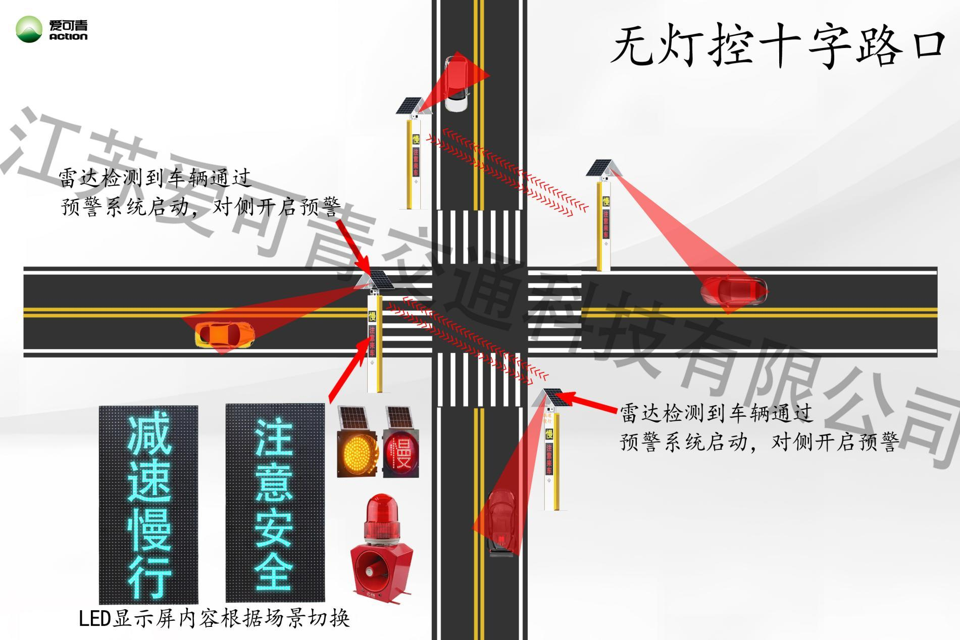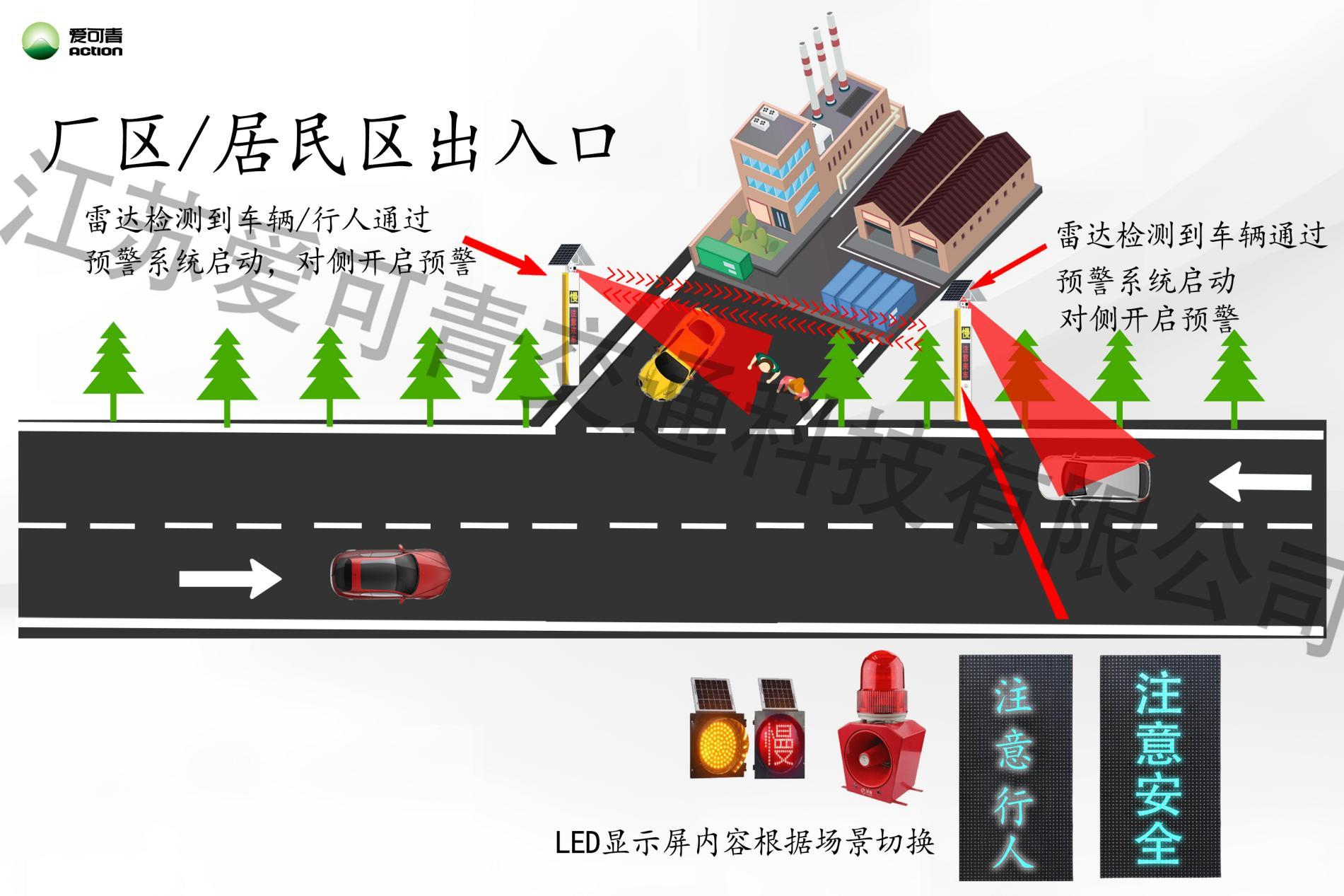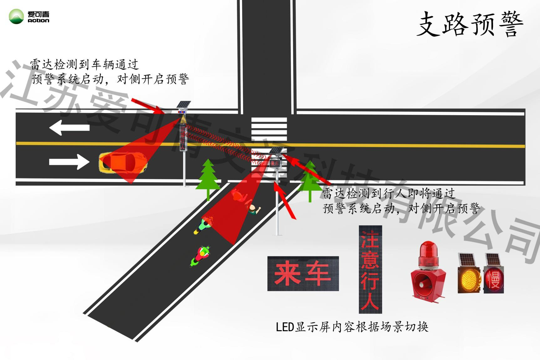 道路預(yù)警系統(tǒng)是設(shè)置在遠(yuǎn)郊或山區(qū)支路與主干路平交路口的,對主路通行的車輛及支路通行的行人和非機(jī)動車進(jìn)行安全提醒的系統(tǒng),是專門用來解決支路與主干路相交產(chǎn)生視覺盲區(qū)引發(fā)交通事故問題的高科技產(chǎn)品,被老百姓親切稱為“不下班的警察”。道路預(yù)警系統(tǒng)”依靠高科技毫米波雷達(dá)掃描大、中、小型機(jī)動車輛以及可能的非機(jī)動車,并對車輛進(jìn)行遠(yuǎn)距離檢測,分析來車的方向、距離、速度,當(dāng)有可能對支路行人造成傷害情況時,系統(tǒng)將雷達(dá)檢測到的來車信息投放至面向支路方向設(shè)置的高亮度戶外 LED 顯示屏,更以聲音、紅藍(lán)爆閃警示燈閃爍的方式,提醒行人或者駕駛員人員注意車輛避讓、安全通行。